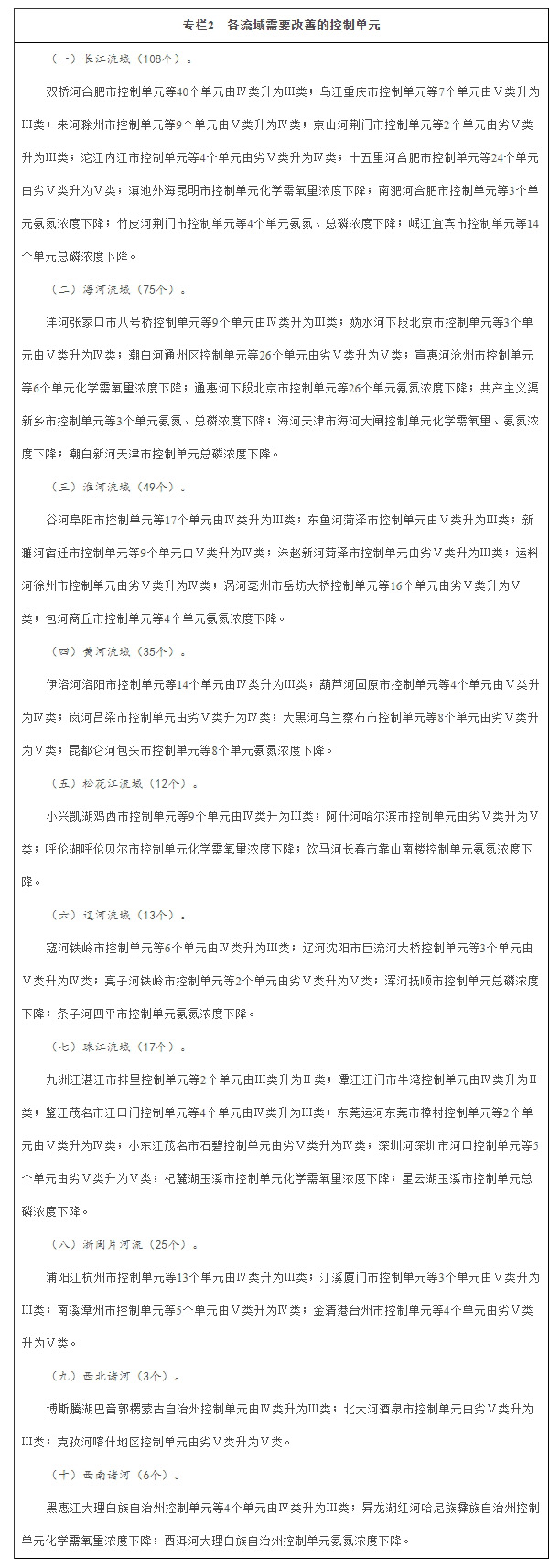 實(shí)施以控制單元為基礎(chǔ)的水環(huán)境質(zhì)量目標(biāo)管理。依據(jù)主體功能區(qū)規(guī)劃和行政區(qū)劃,劃定陸域控制單元,建立流域、水生態(tài)控制區(qū)、水環(huán)境控制單元三級(jí)分區(qū)體系。實(shí)施以控制單元為空間基礎(chǔ)、以斷面水質(zhì)為管理目標(biāo)、以排污許可制為核心的流域水環(huán)境質(zhì)量目標(biāo)管理。優(yōu)化控制單元水質(zhì)斷面監(jiān)測(cè)網(wǎng)絡(luò),建立控制單元產(chǎn)排污與斷面水質(zhì)響應(yīng)反饋機(jī)制,明確劃分控制單元水環(huán)境質(zhì)量責(zé)任,從嚴(yán)控制污染物排放量。全面推行“河長(zhǎng)制”。在黃河、淮河等流域進(jìn)行試點(diǎn),分期分批科學(xué)確定生態(tài)流量(水位),作為流域水量調(diào)度的重要參考。深入實(shí)施《水污染防治行動(dòng)計(jì)劃》,落實(shí)控制單元治污責(zé)任,完成目標(biāo)任務(wù)。固定污染源排放為主的控制單元,要確定區(qū)域、流域重點(diǎn)水污染物和主要超標(biāo)污染物排放控制目標(biāo),實(shí)施基于改善水質(zhì)要求的排污許可,將治污任務(wù)逐一落實(shí)到控制單元內(nèi)的各排污單位(含污水處理廠、設(shè)有排放口的規(guī)模化畜禽養(yǎng)殖單位)。面源(分散源)污染為主或嚴(yán)重缺水的控制單元,要采用政策激勵(lì)、加強(qiáng)監(jiān)管以及確保生態(tài)基流等措施改善水生態(tài)環(huán)境。自2017年起,各省份要定期向社會(huì)公開(kāi)控制單元水環(huán)境質(zhì)量目標(biāo)管理情況。