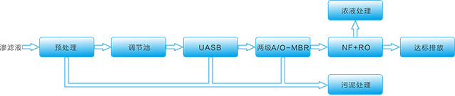 處理要求:出水執(zhí)行《生活垃圾填埋場污染控制標(biāo)準(zhǔn)》(GB16889-2008)中表2標(biāo)準(zhǔn)